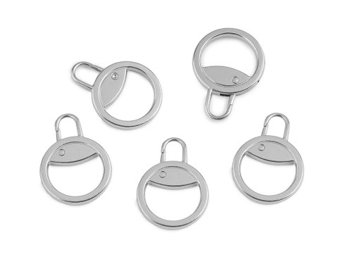 Kovovou karabinku využijete na zipy [jako náhradu za klasický taháček, ale také na klíče apod]. Průměr drátu u menšího očka (u karabinky) je 2 mm.