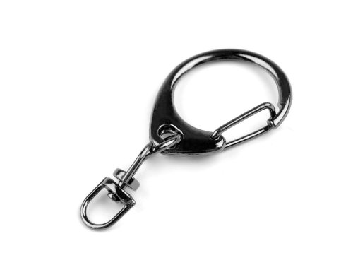 Kovová karabinka je připevněná na otočném obrtlíku. Je vhodná k výrobě klíčenek či různých přívěsků na tašky, kabelky, batohy apod.