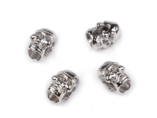 Kovová koncovka na šňůru Ø5 mm / ozdoba lebka - nikl (20 ks)