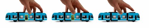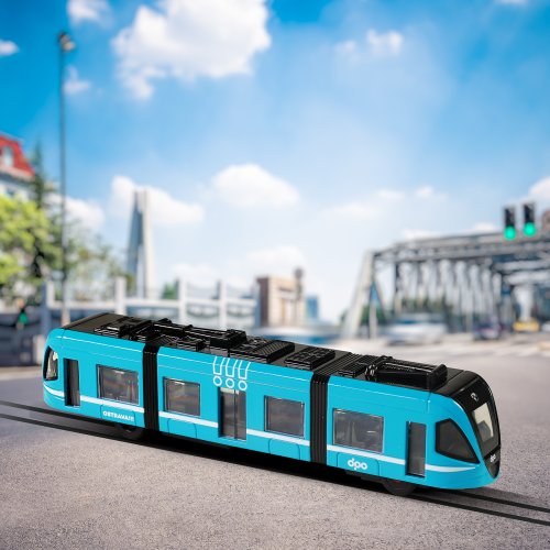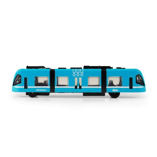 Moderní tramvaj v modré barvě, která jezdí na zpětný chod je perfektním dárkem pro všechny tramvajové nadšence. Dveře na jedné straně vozu lze manuálně otevřít a zavřít pomocí pantografu na střeše vozu. Tramvaj je vyrobená z kovu, je dlouhá 23 cm a je velmi podobná tramvaji, která jezdí ulicemi v Ostravě. Tato hračka byla vyrobena ve spolupráci s Dopravním podnikem města Ostravy a městem OSTRAVA!!!