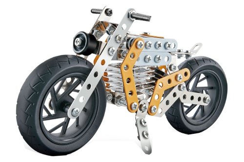 Postavit jedinečnou motorku ve žluté barvě z 162 dílků je náročná, ale zároveň nesmírně uspokojující úloha. Sada obsahuje kombinaci kovových dílů a plastových doplňků, které se spojují pomocí šroubků a matiček. Tento sofistikovaný systém stavby je navržen tak, aby stavění bylo jednoduché, zábavné a zároveň výzvou.