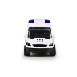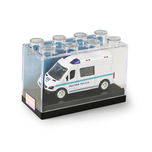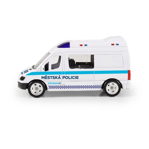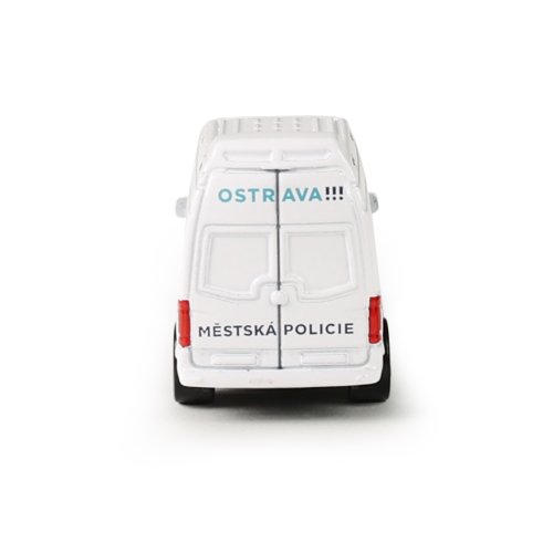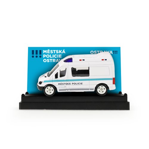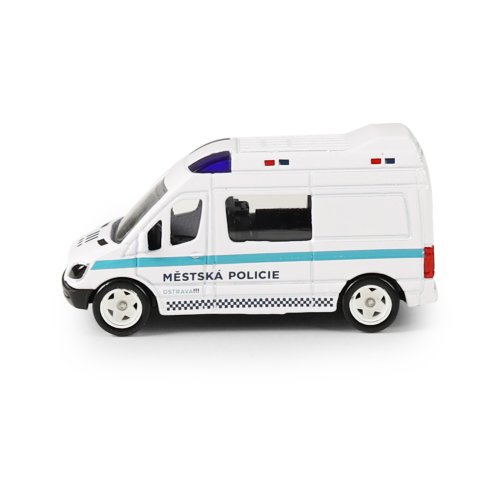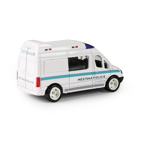 Rozšiř si svůj vozový park a pořiď si tuhle originální kovovou dodávku Městská policie Ostrava. Auto jezdí na volný chod a jeho délka je 7 cm.