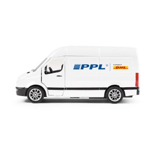 Rozšiř si svůj vozový park a pořiď si tuhle originální kovovou dodávku s logem přepravní společnosti PPL. Auto má otevírací přední dveře. Jezdí na zpětný chod a jeho délka je 12 cm.