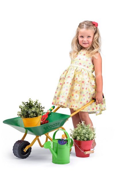 Zahradní kolečko Woody v zelené barvě je nepostradatelnou součástí vybavení každého malého pomocníka na vaší zahradě. Svou jednoduchou konstrukcí, barevnou kombinací a kvalitním provedením si získá přízeň každého malého zahradníka. Bude mu pomocníkem při převážení písku, květin nebo zeleniny. Pevná konstrukce, gumová rukojeť spolu s kolem z tvrdého plastu zajistí zahradníčkovi jednoduchou manipulaci.