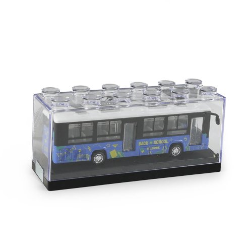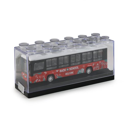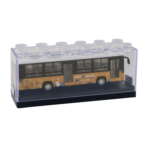Tento mini kovový autobus jezdí na volný chod, má otevírací dveře, kovové tělo s plastovými prvky a jeho délka je 12 cm.