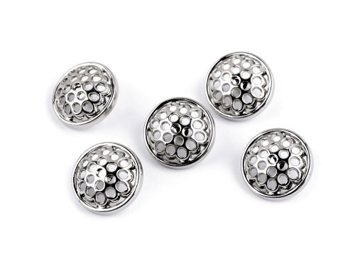 Kovové knoflíky se zajímavým děrovaným designem vyniknou na kabátech, sakách, košilích nebo kardiganech. Mají spodní přišívání. Velikost knoflíků naleznete v této tabulce.