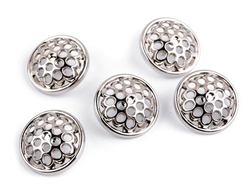 Kovové knoflíky se zajímavým děrovaným designem vyniknou na kabátech, sakách, košilích nebo kardiganech. Mají spodní přišívání. Velikost knoflíků naleznete v této tabulce.