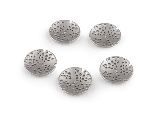 Kovové knoflíky s děrovaným designem vyniknou na kabátech, sakách, bundách nebo kardiganech. Jsou kvalitní, lehce vypouklé a na oděvech upoutají pozornost. Velikost knoflíků naleznete v této tabulce.