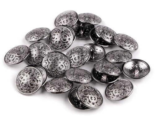 Kovové knoflíky s filigránovým vzorem jsou vyrobené ze slitiny zinku a nemagnetických kovů. Mají spodní přišívání. Knoflíky elegantně vyniknou na kabátech, sakách, košilích apod. Zajímavě ozdobí také kabelky, tašky nebo klobouky. [Knoflíky jsou baleny v sáčku.]Velikost knoflíků naleznete v této tabulce. [Zinek chrání kov proti korozi. Pozinkované výrobky po vyprání zůstávají beze změn.]