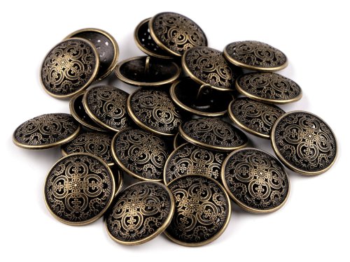 Kovové knoflíky s filigránovým vzorem jsou vyrobené ze slitiny zinku a nemagnetických kovů. Mají spodní přišívání. Knoflíky elegantně vyniknou na kabátech, sakách, košilích apod. Zajímavě ozdobí také kabelky, tašky nebo klobouky. [Knoflíky jsou baleny v sáčku.]Velikost knoflíků naleznete v této tabulce. [Zinek chrání kov proti korozi. Pozinkované výrobky po vyprání zůstávají beze změn.]