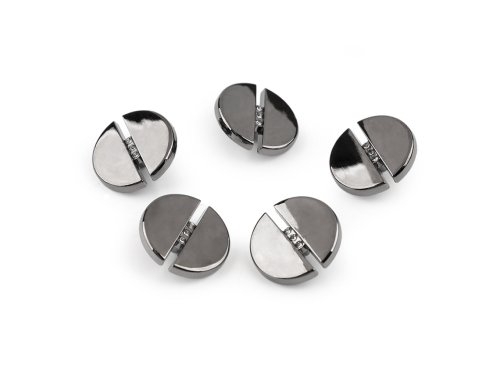Lesklé kovové knoflíky vynikají elegantním designem a kvalitním zpracováním. Jejich střed zdobí broušené kamínky. Knoflíky můžete našít na kabáty, kardigany i saka. Mají spodní přišívání. Velikost knoflíků naleznete v této tabulce.