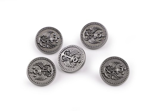 Kovové knoflíky vynikají kvalitním zpracováním s propracovanými detaily. Mají jemný matný lesk. Zajímavě budou vypadat na sakách, kabátech, svetrech, šatech, kalhotách i kraťasech. Můžete je našít také na doplňky, například kabelky, tašky nebo čepice kapitánského stylu apod. Velikost knoflíků naleznete v této tabulce.