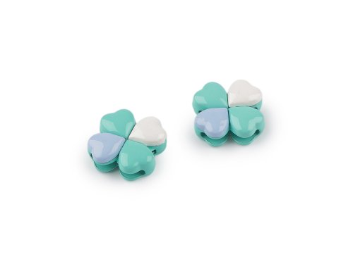 Kovový komponent / přívěsek čtyřlístek Ø15 mm - tyrkys sv. (2 ks)