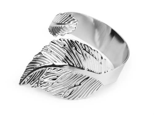 Kovový kroužek na ubrousek s dekorem listů bude elegantní ozdobou svátečního stolu. Skvěle podtrhne slavnostní atmosféru. Má přerušení, což umožňuje snadnější vložení ubrousku.