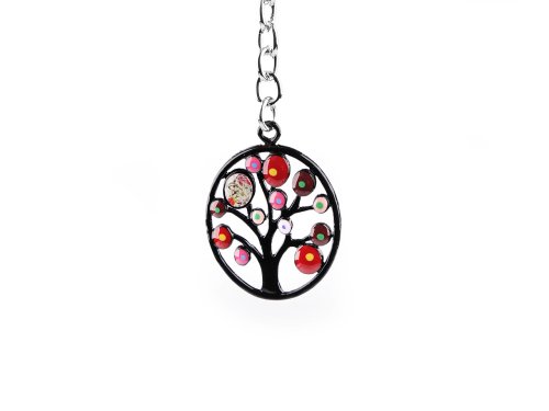 Kovový přívěsek na batoh / klíče sova, strom života - červená strom