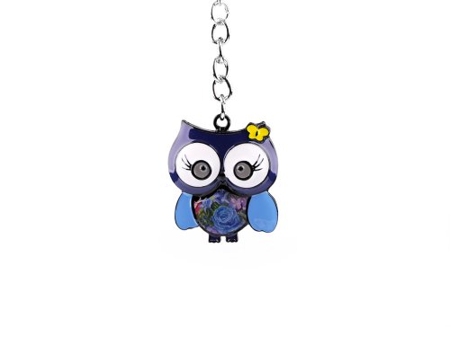 Kovový přívěsek na batoh / klíče sova, strom života - modrá sova
