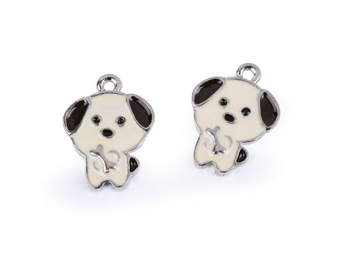 Kovový přívěsek / taháček na zip zvířátko - (79634) krémová světlá pejsek (2 ks)