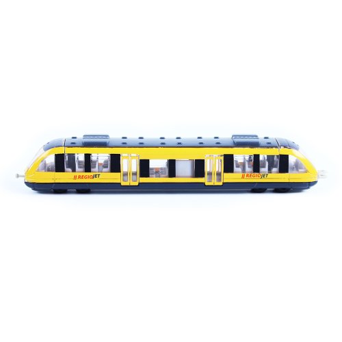 Originální 17 cm dlouhý regionální vlak RegioJet nesmí chybět v pokojíčku žádnému fandovi vláčků! Podobný vlak jezdí na Slovensku a spojuje Bratislavu a Komárno. Tento úžasný kovový model vlaku je ideální jako dárek nebo jako sběratelský kousek! Při koupi více kusů je lze jednoduše zapojit za sebou. Vláček jezdí na volný chod. Rozchod kolejnice je 1,2 cm.