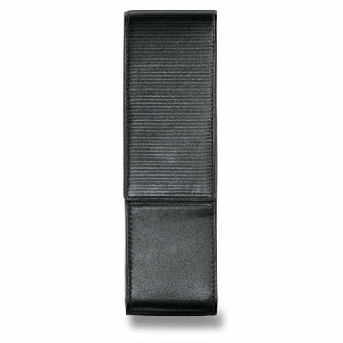 Pouzdro z měkké černé nappa kůže s vyraženými proužky na zavírací klopě, pro 2 pera.