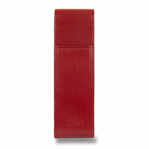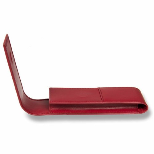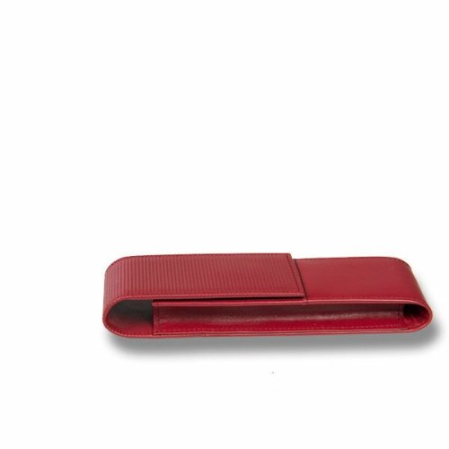 Pouzdro z měkké červené nappa kůže s vyraženými proužky na zavírací klopě, pro 2 pera.