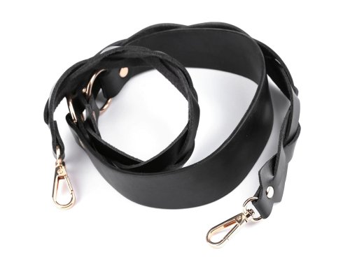 Koženkový popruh působivě vynikne na kabelce. Částečně je splétaný. Z každé strany má karabinu, takže ho ke kabelce lehce připnete. Není nastavitelný do délky.