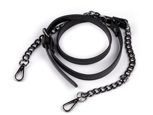 Koženkový popruh / ucho na kabelku s řetízkem a karabinami šíře 1,5 cm - černá černý nikl
