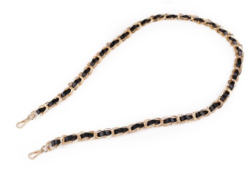 Koženkový popruh / ucho s řetízkem a karabinami šíře 2 cm - černá zlatá
