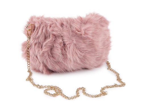 Kožešinová kabelka s kovovým řetízkem 24x19 cm - pudrová