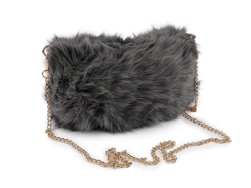 Kožešinová kabelka s kovovým řetízkem 24x19 cm - šedá