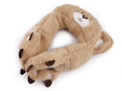 Kožešinové klapky na uši s kšiltem potěší především děti. Nahoře mají medvědí ouška, kšilt je ozdobený výšivkou obličeje. Na klapkách je zpracovaný motiv tlapek. Kšilt se dá nosit nahoru, aby byl vidět obličej nebo sklopit dolů, jako ochrana před sluncem. Chlupaté klapky udrží uši pěkně v teple, chrání před chladem i větrem, jsou vyrobené z umělé kožešiny. Mohou se nosit samostatně i na čepici. Délka po obvodu je 49 cm, včetně klapek na konci obou stran. Průměr klapek je 12 cm.