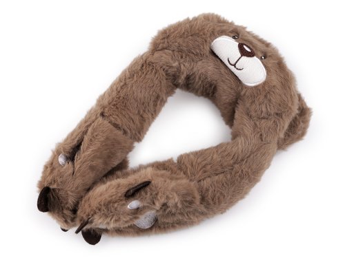 Kožešinové klapky na uši s kšiltem potěší především děti. Nahoře mají medvědí ouška, kšilt je ozdobený výšivkou obličeje. Na klapkách je zpracovaný motiv tlapek. Kšilt se dá nosit nahoru, aby byl vidět obličej nebo sklopit dolů, jako ochrana před sluncem. Chlupaté klapky udrží uši pěkně v teple, chrání před chladem i větrem, jsou vyrobené z umělé kožešiny. Mohou se nosit samostatně i na čepici. Délka po obvodu je 49 cm, včetně klapek na konci obou stran. Průměr klapek je 12 cm.