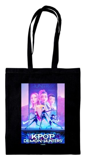 Taška K-pop Demon Hunters je vyrobena z černého plátna a nabízí praktický a stylový doplněk pro fanoušky stejnojmenného animovaného seriálu. Její design je zaměřen na výraznou barevnou grafiku z motivu K-pop Demon Hunters, která je umístěna na přední straně tašky.