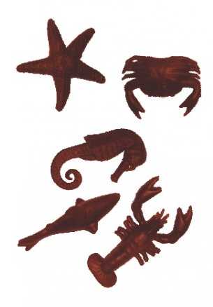 Lahodný pamlsek pro psy ve tvaru plodů moře s krabí příchutí.