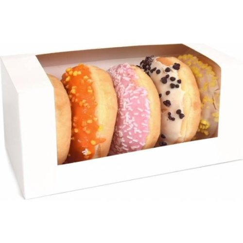 Elegantní krabička pro snadné přenášní donutů. Bílá barva.