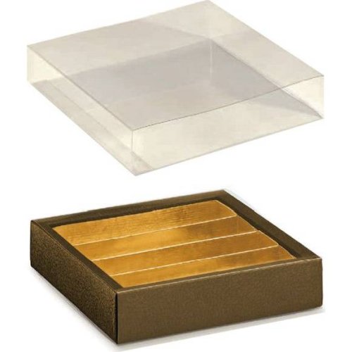 Krabička na pralinky s průhledem + mřížka. Rozměry 145 x 145 mm.