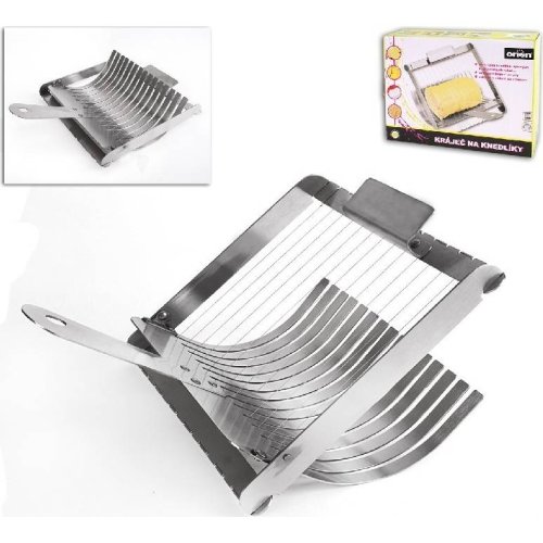 Klasický kráječ knedlíků s nerezovými strunami, který se může mýt i v myčce nádobí.