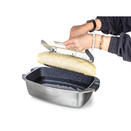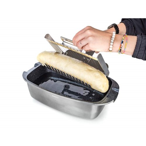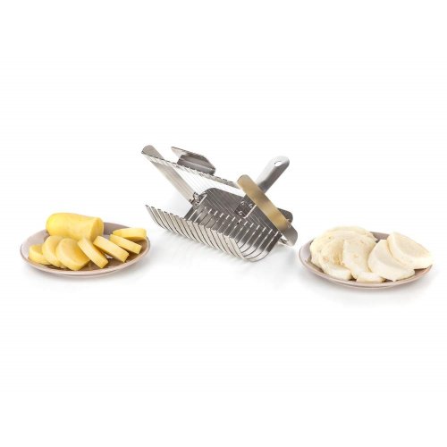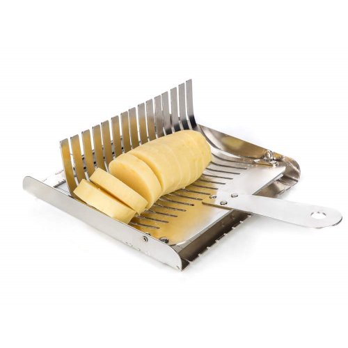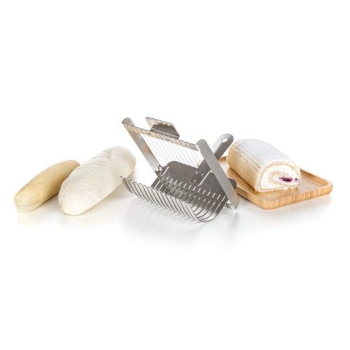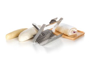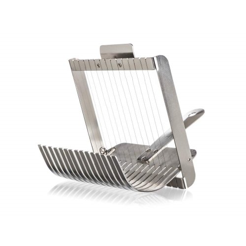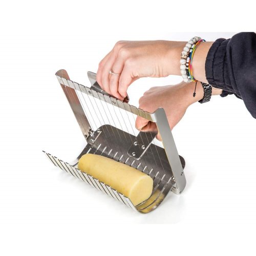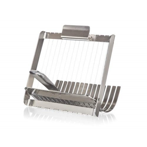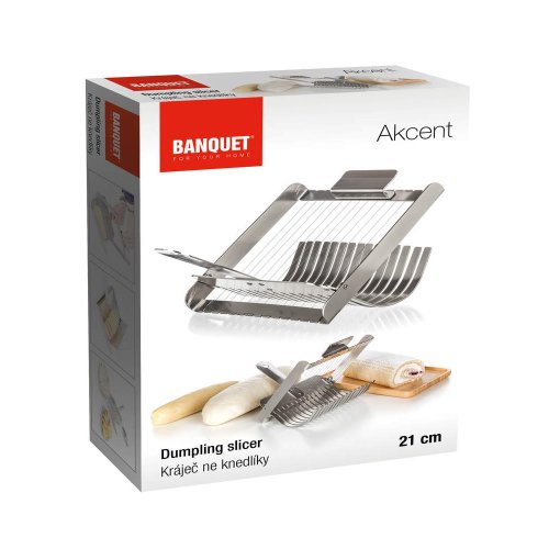 Strunový kráječ na knedlíky AKCENT je určen pro profesionální i domácí použití. Kráječ je ideálním pomocníkem při krájení měkkých právě napařených nebo uvařených knedlíků. Kráječ je opatřen podběrákem, který vám nejdříve pomůže jednoduše a rychle vyndat uvařené knedlíky z horké vody. Následně je kráječem rozkrojíte na souměrné plátky. Dále jej využijete také ke krájení měkkých piškotových rolád, měkkých sýrů typu mozzarella a jiných měkkých potravin.