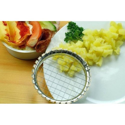 Nerezový kráječ na krájení vařených brambor a jiné zeleniny do salátů.