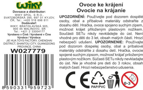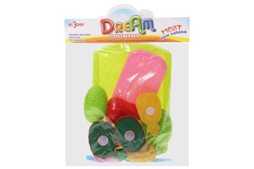 Krájecí ovoce set s tácem. Rozměry tácu 21x14x1 cm. Krájecí ovoce na suchý zip. Obsah balení - krájecí ovoce, tác, prkénko, plastový nožík.