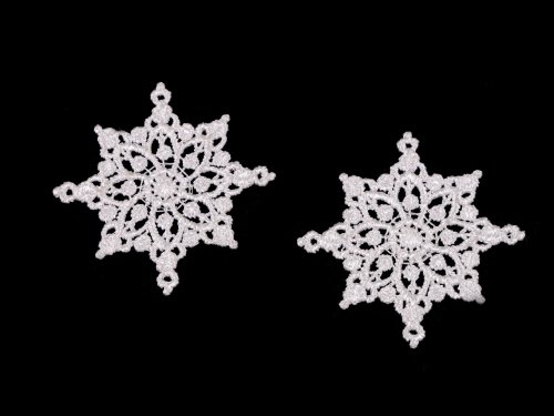 Textilní krajková vločka je velice působivá. Je oboustranná. Používá se ke zdobení oděvů, bytových doplňků, na scrapbooking a další dekorace. Po naškrobení ji můžete použít i jako ozdobu vánočního stromečku. Je skvělá i na aranžování zimních věnců a floristických aranžmá.