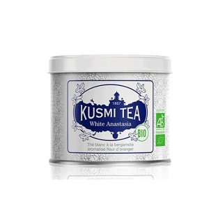 White Anastasia je bílá čajová směs s opojnou kombinací květu pomeranče, bergamotu a citronu, které jemně parfémují čajové lístky bílého a zeleného čaje.