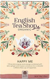 Čaj Pocit štěstí od značky English Tea Shop v bio kvalitě má bylinkovo-ovocnou chuť a kořeněné aroma.