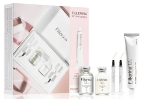 Sada obsahuje: Péče s vyplňujícím účinkem stupeň 4 12 HA (Filler Treatment) 2 x 30 ml Denní krém proti vráskám 12 HA stupeň 4 (Day Cream) 50 ml