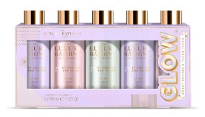 Sada obsahuje: Sprchový gel 50 ml Tělový krém 50 ml Krém na ruce 50 ml Šumivá koule do koupele 25 g Elegantní dárková sada tělové kosmetiky Glow je ideálním způsobem, jak potěšit sebe nebo své blízké.