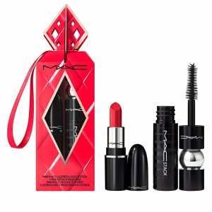 Sada obsahuje: Objemová a prodlužující řasenka Black (Macstack Mini Mascara) 8 ml Lesklá rtěnka Lustreglass Cockney (Lipstick) 3 g