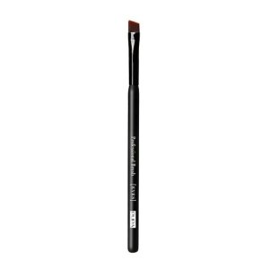 Zúžený, šikmý štětec se syntetickými vlákny je ideální pro definování a úpravu obočí.