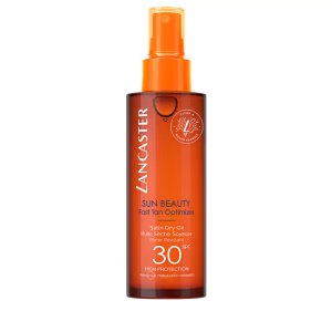 Suchý olej na opalování SPF 30 Sun Beauty poskytuje vysokou ochranu před slunečním zářením a tím chrání pokožku před předčasným stárnutím.