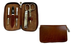 Pánská manikúrová sada z pravé kůže v hnědé barvě.