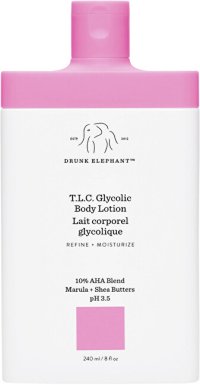 Vysoce účinné 10% AHA tělové mléko exfoliuje, obnovuje a vyživuje suchou a mdlou pokožku.