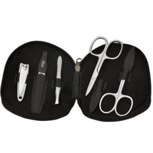 Luxusní manikúrová sada z černé syntetické kůže a lesklého niklu se díky své velikosti vejde do každého zavazadla, a může vás tak doprovázet na všech cestách!
